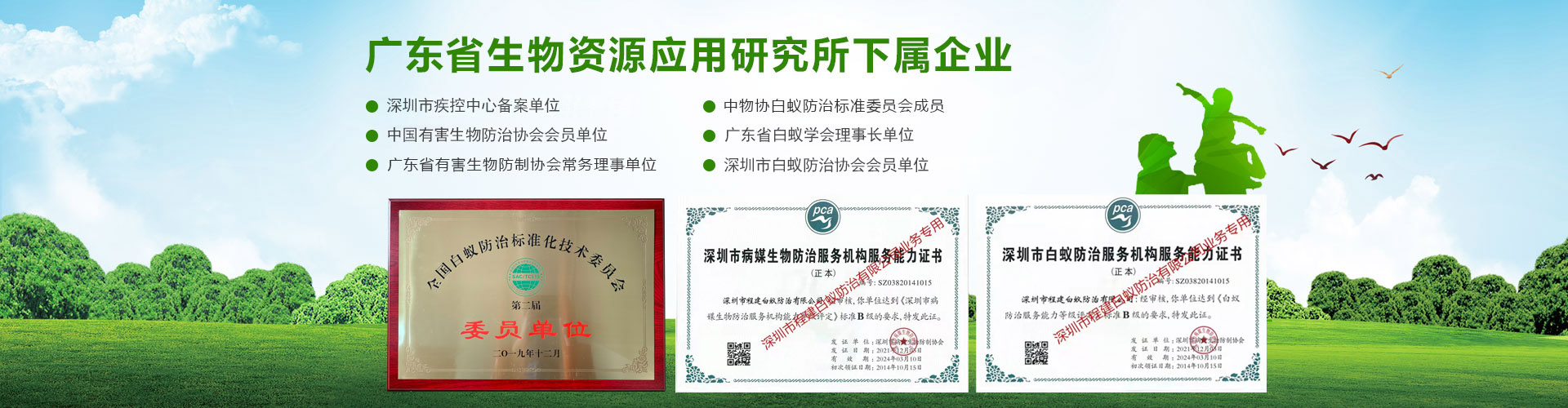 深圳市程建白蟻防治中心有限公司(深圳市白蟻防治中心、深圳市殺白蟻公司、滅白蟻公司、治白蟻公司、除白蟻公司、防白蟻公司、深圳市消殺公司、深圳市殺蟲公司)、于二00二年十一月成立。是經(jīng)深圳市政府有關(guān)部門批準(zhǔn),市工商行政管理局注冊登記的法人企業(yè),深圳市蟲鼠防治協(xié)會(PCO)成員單位,持有政府部門頒發(fā)“白蟻防治服務(wù)機構(gòu)服務(wù)能力證書B級”、“有害生物防制服務(wù)機構(gòu)服務(wù)能力證書B級”雙資質(zhì)證書的有害生物防治單位。公司主要服務(wù)政府、事業(yè)、企業(yè)、工廠、賓館、園林、小區(qū)、大廈等單位的白蟻防治、有害生物防制施工的專業(yè)機構(gòu)。技術(shù)力量雄厚,擁有各層次專業(yè)技術(shù)人員三十多名。